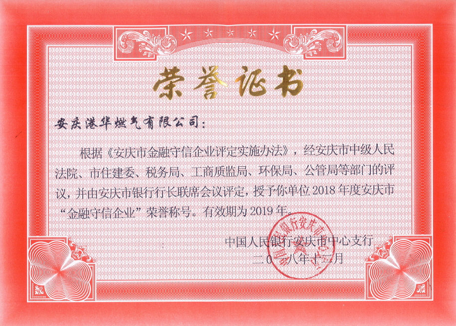 安慶港華再次榮獲“金融守信企業(yè)”稱號 發(fā)布時間:2019-06-20    閱讀次數(shù):8094次