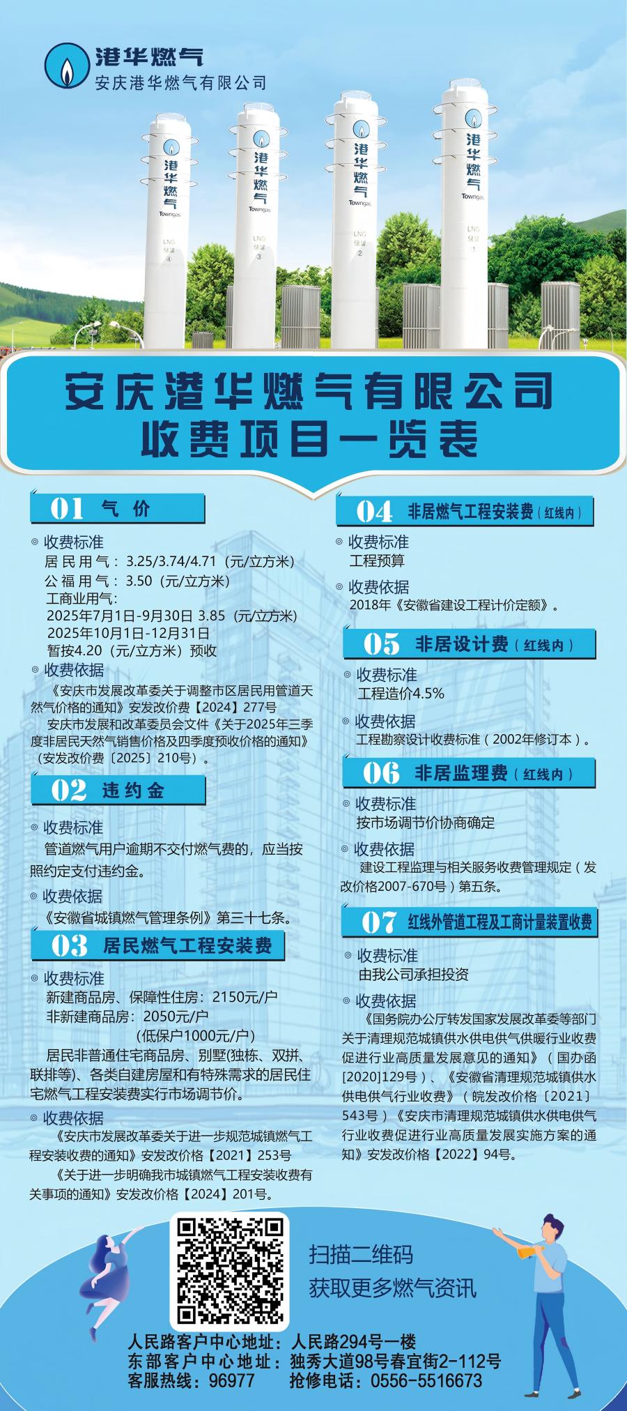 安慶港華燃?xì)庥邢薰臼召M(fèi)項目一覽表(2025)