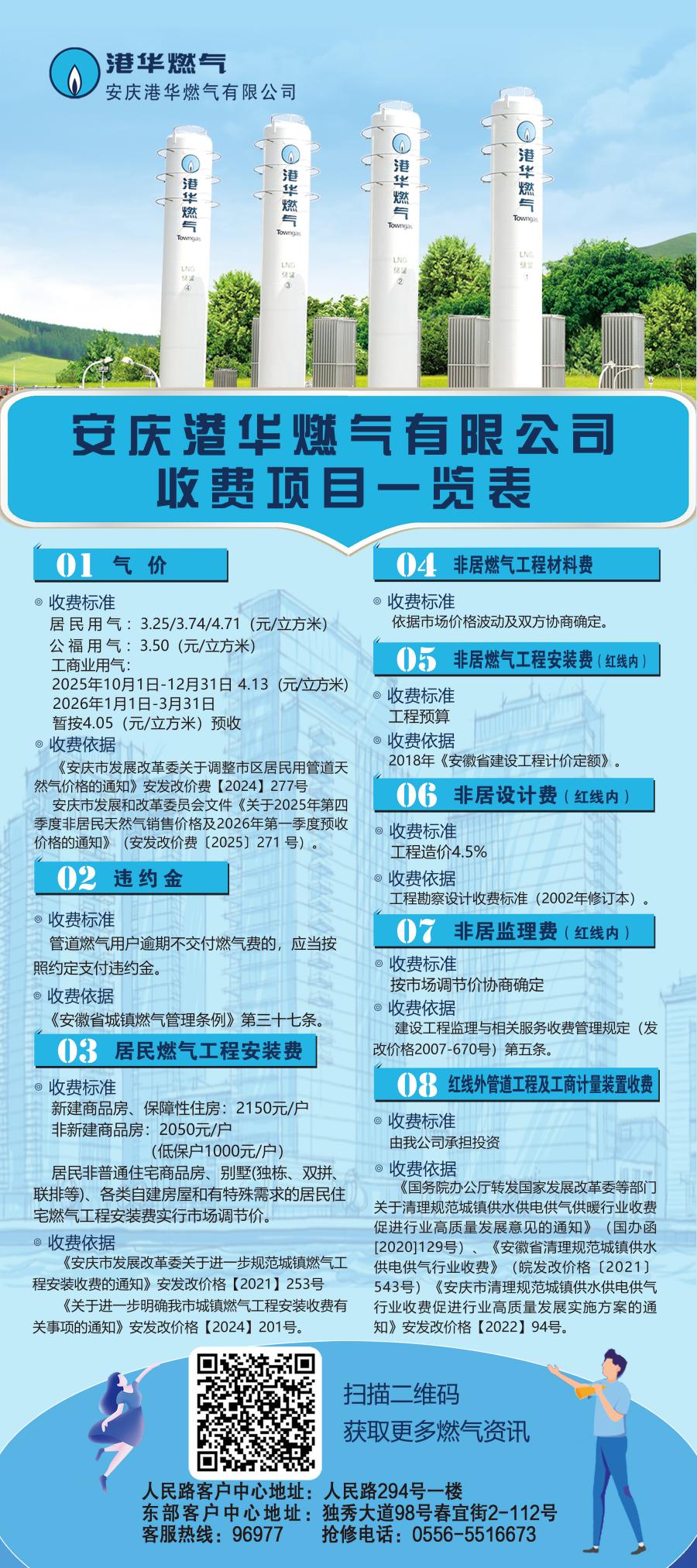 安慶港華燃?xì)庥邢薰臼召M(fèi)項(xiàng)目一覽表(2025)