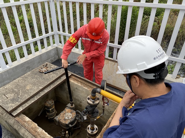 “山口高壓停輸作業(yè)區(qū)域燃氣探漏車第三次檢測結(jié)果無異常,可開啟管線4#閥門”,伴隨著來自安慶港華調(diào)度中心的指令,高壓管線與北部新城場站連接的最后一道閥門緩緩開啟,安慶高新區(qū)山口片區(qū)高壓燃氣輸配工程高壓管線順利完成接駁。