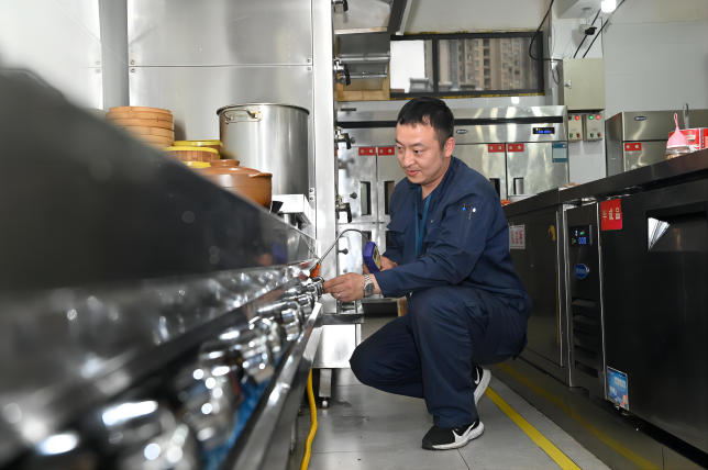 在這次專項安全檢查期間,安慶港華工商安檢員走進全市大中小學、幼兒園等教育機構(gòu)學校食堂,認真排查食堂表前閥、表后閥及燃氣表,每處連接口是否銹蝕,并用檢測儀器測試各連接口處是否存在漏氣現(xiàn)象。對灶臺內(nèi)部、灶前閥是否漏氣進行檢測。