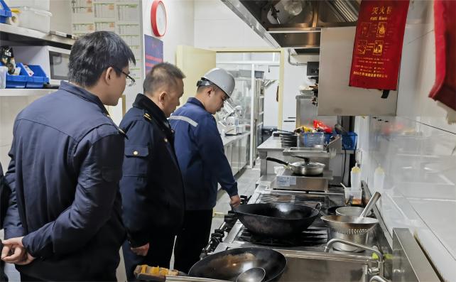 工作組對(duì)區(qū)內(nèi)商業(yè)綜合體的燃?xì)夤芫€及商戶廚房用氣情況進(jìn)行全面排查,著重檢查了燃?xì)鈭?bào)警器、煙道等可能存在隱患處,對(duì)發(fā)現(xiàn)的廚房雜物覆蓋燃?xì)庖牍?、使用無熄火保護(hù)裝置燃?xì)饩叩入[患,立即下達(dá)隱患整改單,督促商戶及時(shí)整改,并現(xiàn)場(chǎng)開展燃?xì)獍踩麄鹘逃?,普及燃?xì)馐褂冒踩R(shí)及相關(guān)急救措施,切實(shí)提高餐飲從業(yè)者的燃?xì)獍踩庾R(shí)。